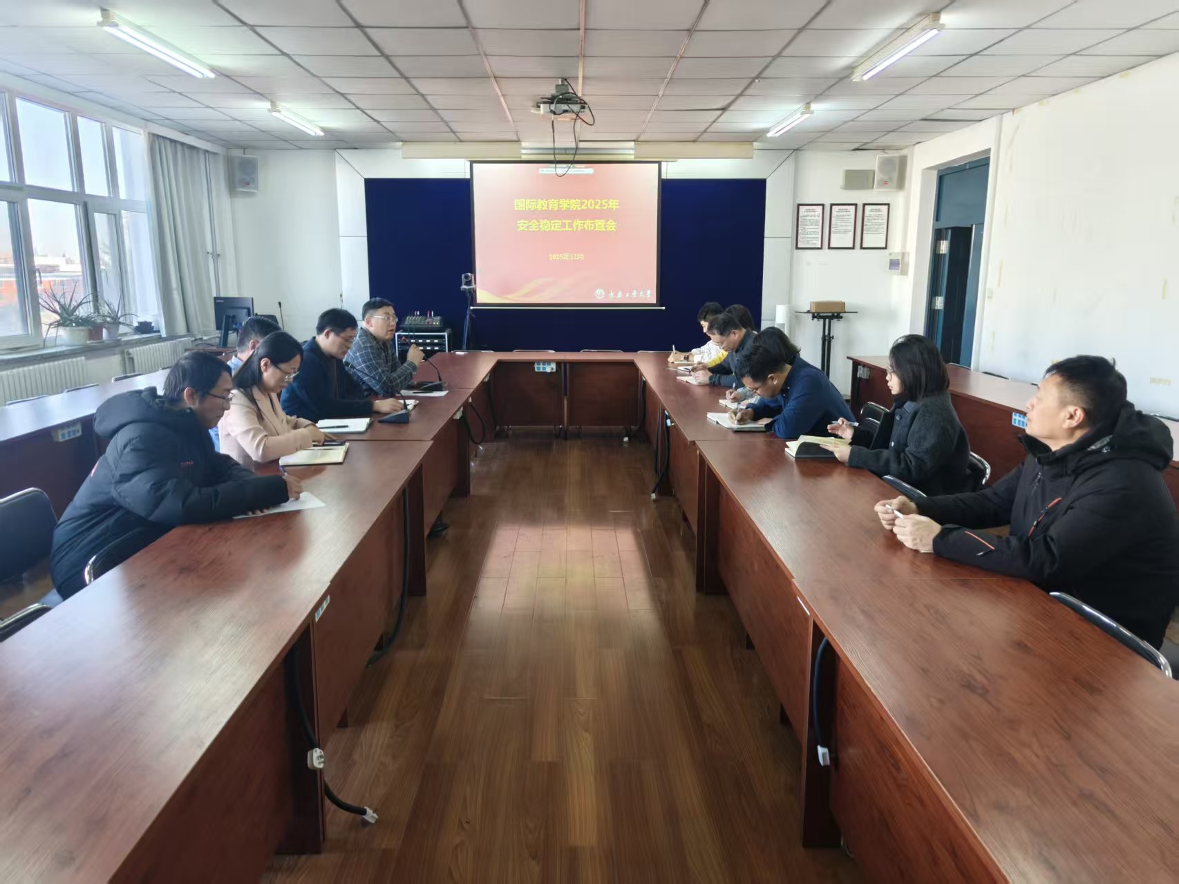 季宏伟在会上强调,要坚决落实好学校安全稳定工作会议精神与部署要求,持续压实安全责任、抓实工作举措。他要求全院上下:一要统一思想认识,坚决克服麻痹思想和侥幸心理;二要在行动上严格执行,全面落实学校各项工作要求,排查安全隐患要确保不留死角、不存盲区;三要在制度上持续完善,推动全院各部门协同联动、齐抓共管,通过健全制度体系筑牢风险防控屏障。院长崔高健在会上指出,校园安全无小事,必须警钟长鸣、常抓不懈。全院要牢固树立“一盘棋”思想,压实各级责任,重点做好中外合作办学项目、留学生教育等涉外安全稳定工作及合作办学学生教育、管理和服务、保障等重点工作,推动安全责任落实到每个岗位、每个环节。党委副书记徐秉锋传达了近期上级部门及学校安全稳定工作会议精神,并结合学院实际,从健全工作机制、聚焦重点任务等方面作出具体部署,要求学院各部门强化协同、细化措施,确保各项安全稳定工作落地见效。