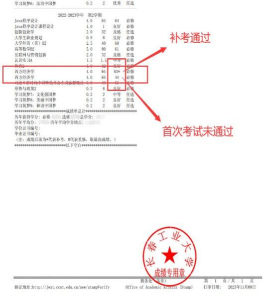 5.预览后如有补考重修,成绩单即体现。