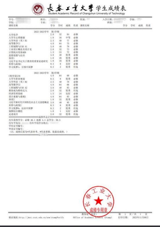 9.温馨提示:请各位同学仔细阅读打印成绩单操作流程, 正确操作下载所需要的成绩单,此成绩单不作为奖学金评定、入党等依据。