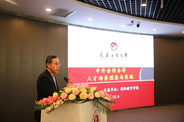长春理工大学国际交流与合作处处长盛海涛作了题为《提质增效 融汇资源 以中外合作办学带动学校全面发展》的发言,长春师范大学国际交流学院院长袁晓红作了题为《融合视域下的中外合作办学课程体系建设——以长春师范大学中澳合作办学项目为例》的发言,吉林大学莱姆顿学院副院长何曜作了题为《引进优质教育资源,让“外”融通于“中”,打造高质量中外合作办学》的主旨发言。