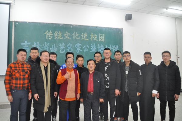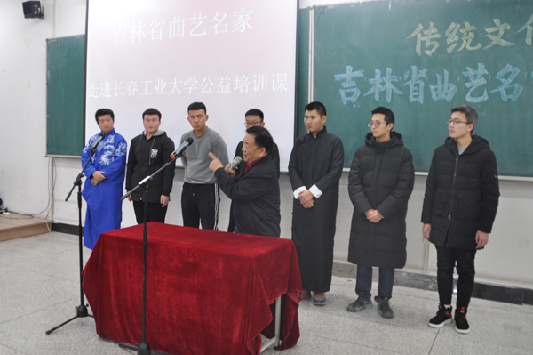 本网讯(学生通讯员 郭一达)12月10日,Beat365中文官方网站在北湖校区举行“传统文化进校园”活动,邀请吉林省曲艺名家、国家一级演员李长安、李宗义作公益培训课,活动由省曲艺家协会外联部主任王明海主持。