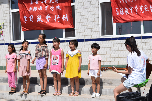 四天时间里,大学生志愿者们热情饱满,给孩子们上诗词赏析、趣味数学和手工绘画课,陪孩子们一起做游戏,教她们唱歌、跳舞,鼓励他们要勇敢、自信,并为孩子们赠送精心准备的礼物。在最后一天的汇报演出中,大学生和小朋友们同台表演了自编自导的文艺节目,展示了大学生的青春风采和小朋友们的阳光童真。丰富多彩的互动活动让村里的孩子们体验和感受到了别样的暑期生活。