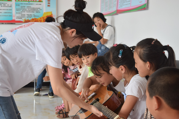 大学生志愿者给孩子们上音乐课