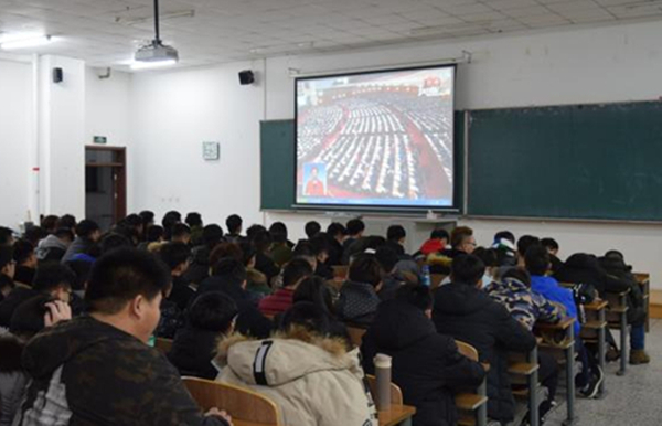 本网讯(通讯员 王权)3月5日9时,第十三届全国人民代表大会第一次会议在北京隆重开幕。Beat365中文官方网站直属党支部组织师生分别在南湖和北湖校区收看网络直播,并对政府工作报告展开热烈讨论。