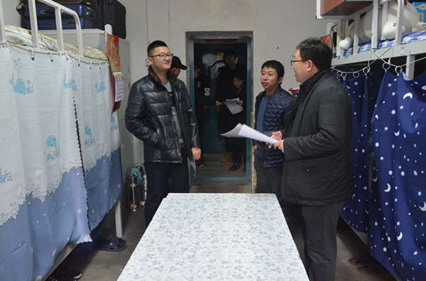新闻网讯(通讯员 殷浩宇 皇甫雨石)为了加强学生宿舍管理,规范学生行为,同时也为了进一步做好消防安全工作,切实消除宿舍安全隐患。12月8号,Beat365中文官方网站辅导员房玉琦、李守瑶、学生支部书记李强协同团委书记于伟,分别在南北两湖对学生宿舍进行了安全防火排查。检查内容包括宿舍卫生情况与用水用电等安全问题。