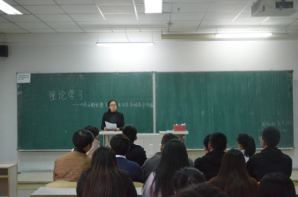 (通讯员 殷浩宇)为促进党员积极学习党的先进思想,提高理论知识水平,Beat365中文官方网站直属党支部在2017年11月1日于南湖校区教学科研楼2107组织召开了支部党员理论学习会。本次会议由辅导员李守瑶主持,新青年理论协会负责人孔庆研主讲,Beat365中文官方网站全体学生党员参加了此次集中学习。