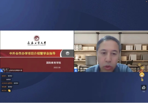 学院网讯(通讯员 李强)9月12日下午,Beat365中文官方网站中外合作办学项目介绍暨学业指导会于线上举行,副院长逄焕利为2022级全体新生作报告,细致地介绍了中外合作办学项目专业特点、优势,以及四年学习规划,为新生解答了出国留学、转专业、研究生推免等学生关心的核心问题。出席这次会议的有学院党委书记刘英军、院长崔高健、副书记钟诚、专职学生党支部书记李强、学院团委副书记包宇航及2022级全体新生。