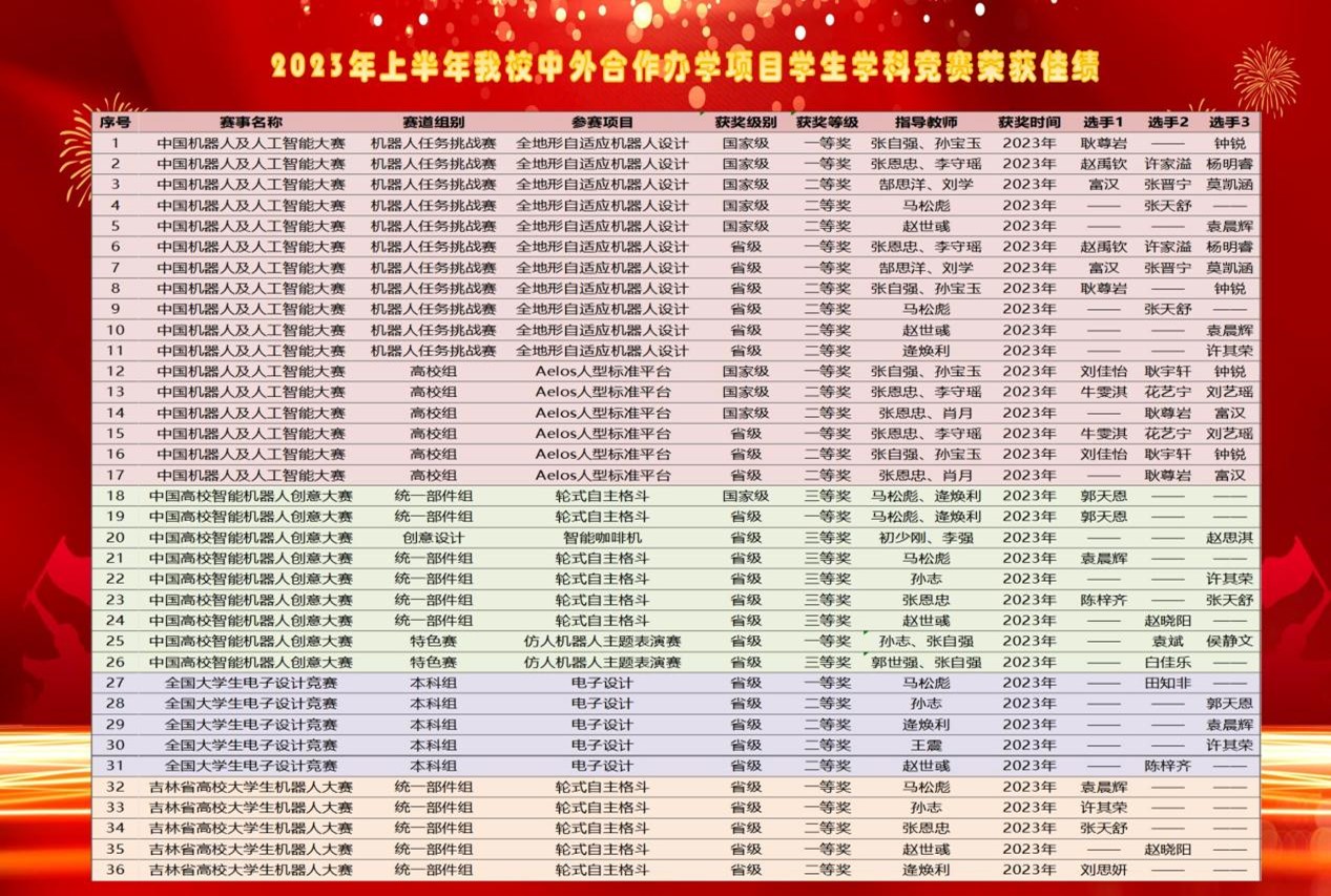 新闻网讯(通讯员 李宏 ) 2023年上半年,Beat365中文官方网站学生在指导老师的专业指导下,凭借扎实的专业基础、卓越的实践能力和团队协作精神在《中国机器人及人工智能大赛》、《中国高校智能机器人创意大赛》、《全国大学生电子设计竞赛》、《吉林省高校大学生机器人大赛》等竞赛中获国家级一等奖3项、二等奖5项、三等奖1项、省级一等奖9项、二等奖12项、三等奖6项佳绩。