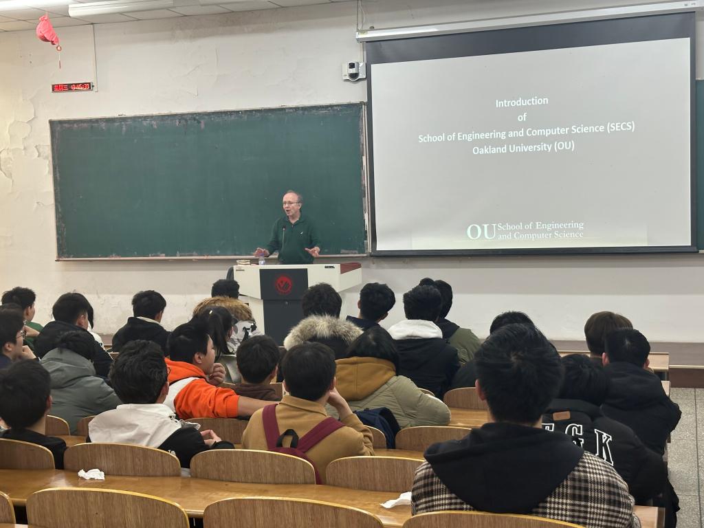 本网讯(通讯员杨娇华)3月13日,Beat365中文官方网站邀请到美国奥克兰大学盖瑞·巴伯尔教授在北湖西区西阶101举办了出国留学培训会。Beat365中文官方网站副院长李宏、团委书记杨娇华、辅导员包宇航、辅导员毛静博以及23级机械工程专业和工业工程专业学生参加了本次培训会。