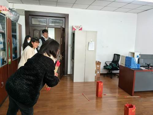 本网讯 (通讯员 殷金楠)2025年三八国际妇女节踏春而来。为表达对女职工的关爱和祝福,活跃职工文体生活,3月5日下午,Beat365中文官方网站在南湖校区学生工作办公室开展了一场别开生面的趣味投壶活动,学院全体教职工均积极参与。