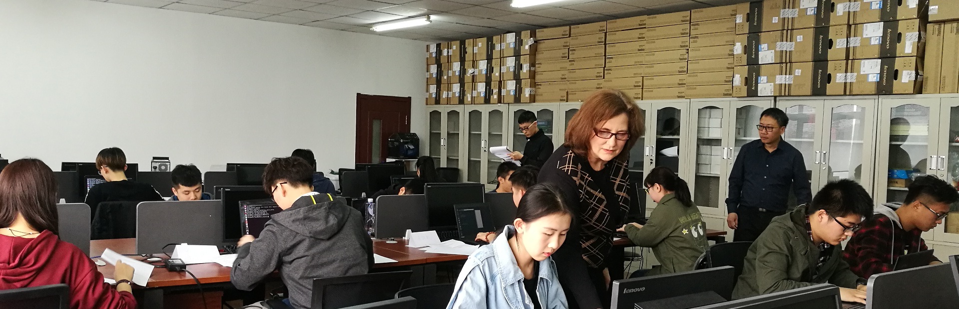 波特兰州立大学Karlar Fant教授、李京柯教授为学生进行编程测试
